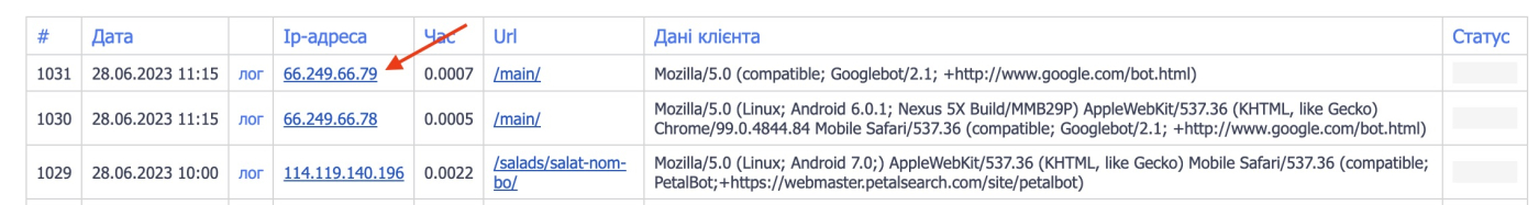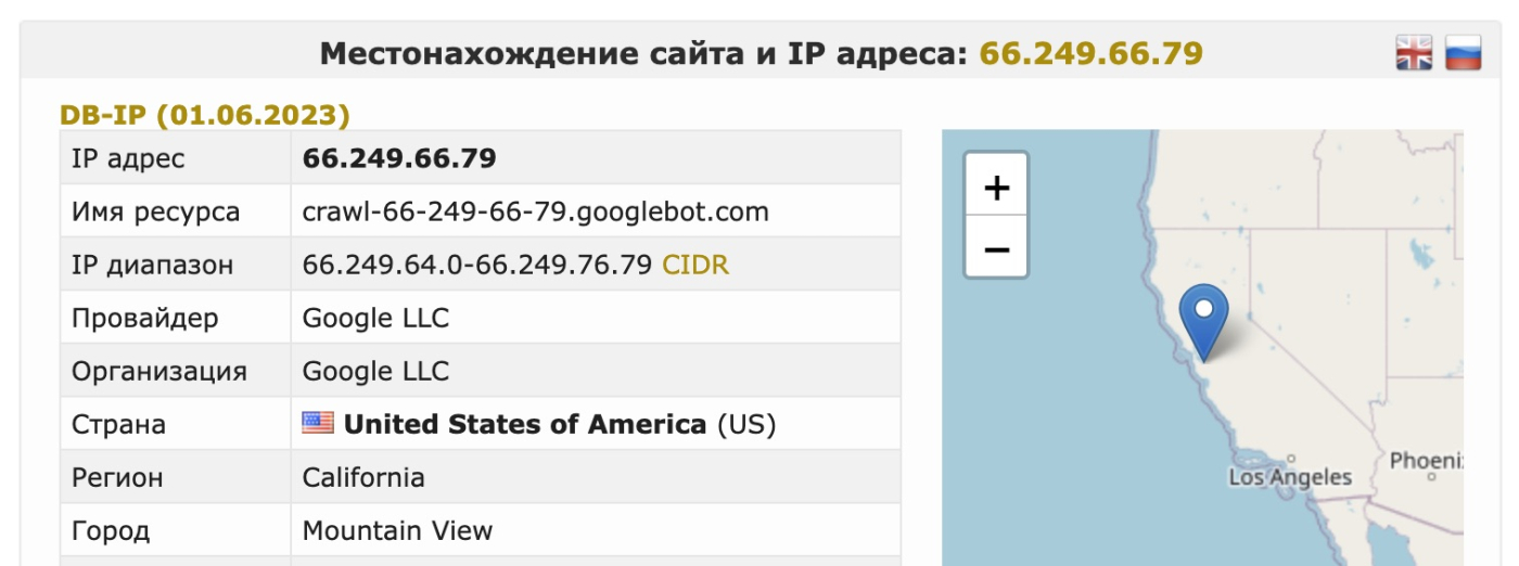 После нажатия откроется информация о этом IP-адресе. В данном случае это поисковый бот Google: